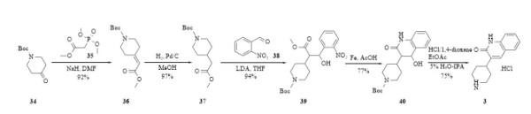 路线一(原研公司专利CN102834388B)[1]:以N‑Boc‑4‑哌啶酮为起始原料,经5步反应(偶联、氢化、缩合、环化、脱保护)得到中间体3(图10)。