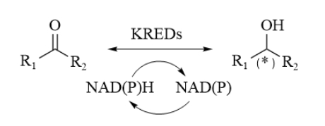 酮还原酶(Ketoreductase, KRED)又称为羰基还原酶,是能够催化醛/酮与醇之间可逆地进行氧化还原反应的酶类,并且需要NAD(H)或NADP(H)等辅酶作为氢传递体。